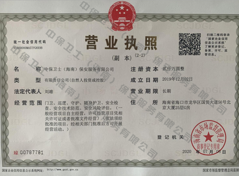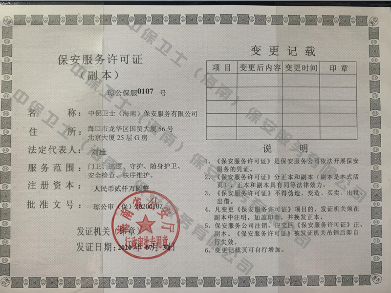 南宁逸凡科研项目管理有限公司是经海南省公安厅批准,依法持有《保安服务许可证》,提供保安服务、门卫、巡逻、守护、区域秩序维护、随身护卫、安全检查的专业化保安服务公司。